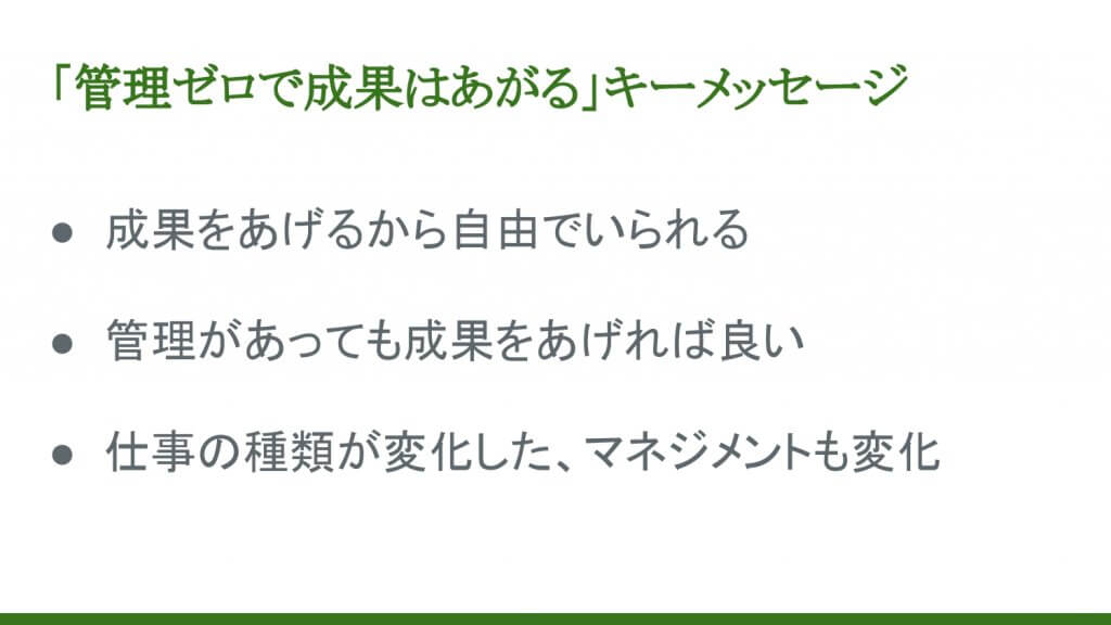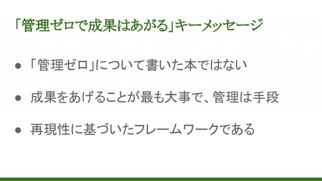 再現性に基づいた成果をあげるフレームワーク「管理ゼロで成果はあがる」講演資料(抜粋版)