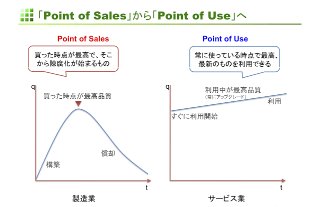 本来のソフトウェアの機能や品質が良いと言えるのは、「Point of Sales(売った時点を最高品質とする考え方)」ではなく「Point of Use(利用する時点を最高品質にし続ける考え方)」だからです。